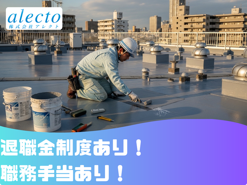 仕事内容 ☆株式会社アレクトで対応中の仕事内容☆ ■シーリング作業: 新築の建物にシーリングを打ち込む作業や マンションや戸建ての傷んだ シーリング材を打ち変える作業 ■防水施工作業: 建物の屋上などで防水材を使って 雨水の侵入を防ぐために行う作業 〇アスファルト防水 〇ウレタン防水 〇シート防水など ≪改修工事について≫ 高経年マンションの質や価値を 長持ちさせていくため <改修工事>を行い、 環境の回復に加え マンションの資産価値を高めます。 ≪防水施工作業について≫ 防水施工作業は、 建物の寿命を延ばすため 外壁内部の防水シートの 破損を早期発見し 早めに対処することが必要となります。