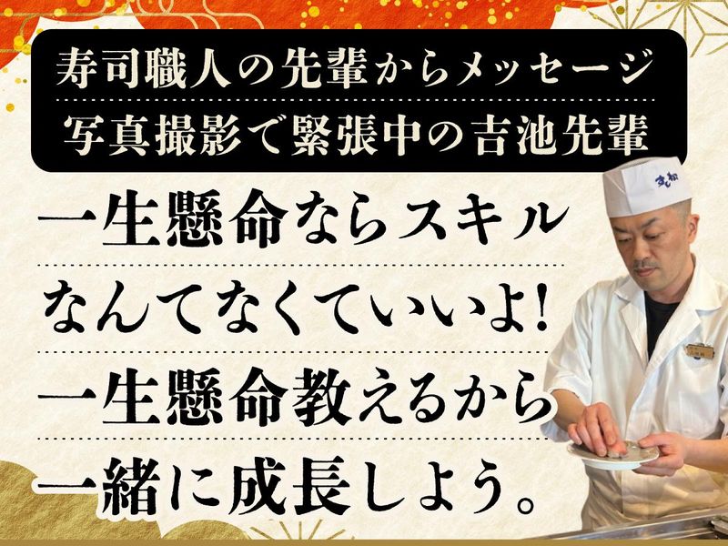 仕事内容 ✅久しぶりの正社員募集 ✅20代、30代、40代活躍中! ✅未経験でもトライしやすい工夫いっぱい! 新人の「あなた」のために、手厚くサポートできます! ■―――― 仕事内容 ――――■ ・食材の下処理&準備 ・洗い場業務 ・食材の管理 ・巻物や軍艦のシャリ作り (機械でシャリを作れるので効率的!) ・ゆくゆくは以下もお任せ …お客様の前に立って寿司を握る …店舗運営 ■―――――――― すし松が未経験でも 挑戦しやすいワケ! ――――――――■ ・洗米機を導入 ・軍艦や手巻きずしのシャリ作りも機械で ・ベテランの先輩から刃物の使い方、さばき方などを学べる ・失敗を笑って許す、あたたかい職場 より詳しいことは、 先輩インタビューで知ってください! ■―――――――――――――― 先輩インタビュー(吉池) 未経験だった僕が、 26年続けられた理由。 ――――――――――――――■ ★入社時、包丁を持つのも初めてだった★ 従姉の兄が寿司屋で働いていて、幼い頃から寿司職人に憧れはあったけれど、技術はゼロでした! ★失敗もあった新人時代★ 正直、新人時代は失敗をしたこともあります。 でも、ココには『最初はみんなこうだったよ』みたいに「失敗を笑って許してくれる仲間」がいたから続けられましたね。怒鳴り声なんて、うちの店にはありません(笑) 下積み時代を乗り越えて、エビの殻むきからスタートし、アジ・イワシ、はまち・ブリへと少しずつ任せてもらう仕事が増えていきました! ★未経験の気持ちがわかる 昔は全部手作業でしたが、今は洗米機もあるし、軍艦のシャリ作りも機械で効率的に作れます。 昔より学びに専念できる環境になりました!未経験スタートの僕だからこそ、気を付けた方がいいところやコツも伝えられます。 ★立派な経験も器用さも不要! 新しく入ってくる仲間に僕が伝えたいのは、「不器用でいい」ということです。 手先が器用じゃなくても、学歴や経験がなくても諦めないでください。 大事なのは、気配りができるか、失敗を恐れずにトライできるかです! ■―――――――― 入社後の 具体的なステップ ――――――――■ ▼入社〜3ヶ月/見習い期間 まずはバックヤードで、シャリの準備や巻物、洗い場からスタート。 店のスピード感とチームの連携を体で覚えます。 ▼半年〜1年/修行期間 包丁を持ち、アジやイカなどの捌き方を伝授。 先輩がマンツーマンで教えるので、不器用でも「やる気」があれば大丈夫。 ▼3年目以降/職人〜管理者へ カウンターでの握りはもちろん、仕入れ、アルバイト教育、売上管理など 「経営者」としての視点を養います。 ■―――――――― キャリアUPしている 先輩たちがいる ――――――――■ ⏩経験を積んでキャリアUP可能 寿司職人としてのキャリアだけでなく、店舗運営や人材育成などにも関わる道もあります! ⏩老舗の技術×回転寿司の経営ノウハウが学べる うちでスキルを身に着けたOBの中には、フィンランドで寿司店を開業し、成功している先輩も!
