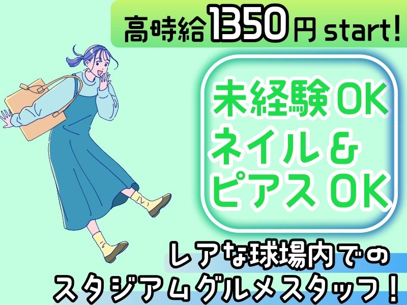 求める人材: 未経験OK! 大学生・フリーター歓迎! ーーーーーーーーーーーーーーー *未経験・アルバイトデビュー歓迎 *お友達との応募OK *扶養控除内勤務OK *子育て中の主婦・主夫パート活躍中! *40代・50代の中高年・ミドル・シニア層も活躍中 *専門学生や大学生活躍中! <こんな方を歓迎> ・野球やイベントが好きな方 ・接客の仕事が初めての方 ・飲食店の経験が無い方 ・カフェ・居酒屋・レストランなどの経験がある方 ・他のバイトとのWワークを考えている方 ・ハローワークでお仕事をお探し中の方 ーーーーーーーーーーーーーーーーーーーー