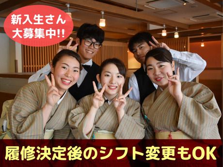 仕事内容 「料理を運ぶ」「空いたお皿やグラスの回収」などの簡単な業務のみ! お客様に呼び止められても社員やホールの先輩スタッフにバトンタッチでOKです♪その他、「お席へのご案内」「鍋タレ・ドリンク・アイスの用意」もあり。興味が湧いたらオーダー取り等も。ゆっくり覚えてくれれば大丈夫なので楽しんでくださいね!ちょっぴり高級店ではありますが、妙にかしこまった接客よりも親しみのある接客を好む地域の常連の中高年の方が多いお店で、初めての方も存分に活躍中です。 自分磨き★木曽路ならではのおもてなしも働きながら覚えていけますよ! お客様への料理の説明や美味しいお召し上がり方など、笑顔も会話もある接客を先輩スタッフがしっかりと伝授しますので覚えられますよ! お客様とのつながり、楽しいふれあいを通して笑顔の応対・マナーも磨かれるので、身につけておいて損はないスキルですよ!日常や就活にも活かしてくださいね!常連様から名前で呼んでいただけるような愛嬌や笑顔があればどなたも即戦力です♪ 短時間でもサクッと稼げる高時給!学生から中高年まで多くの方が効率よくお小遣い稼ぎしています! ・品出しや陳列などで意外と膝・腰にくるコンビニやスーパー業務 ・同じ場所に立ちっぱなしなので地味に負担がかかるレジや工場軽作業 ・ワンオペ時間が結構あって覚える事が多いカフェや弁当屋 ・引っ切り無しに動いていて体力勝負なレストラン・ファストフード・居酒屋 …等と比べても、木曽路のバイトは辛くない♪…と現役スタッフ談。 学校や遊びと両立しながら働けますよ(by学生)!急なお休み対応も相談できるから安心(by主婦)! 「平日のみOK」「11:00~22:00の間で1日3h~選べる時間」「平日最大時給1200円」「2週間毎自己申告制」「扶養控除内OK」 学生はもちろんフリーターもたくさん活躍中なので、テスト期間等があってもみんなでカバーできるから安心。仕事もプライベートも相談し合える仲間がいるので活躍しやすい環境です。 非日常も楽しんでみませんか! ★★★新入生も大募集中★★★ ■<大・短・専門>新1年生!も大歓迎■ 履修が決定してからのシフト変更もOK! バイトを初めて、ワクワクの新生活をリッチにいこう!