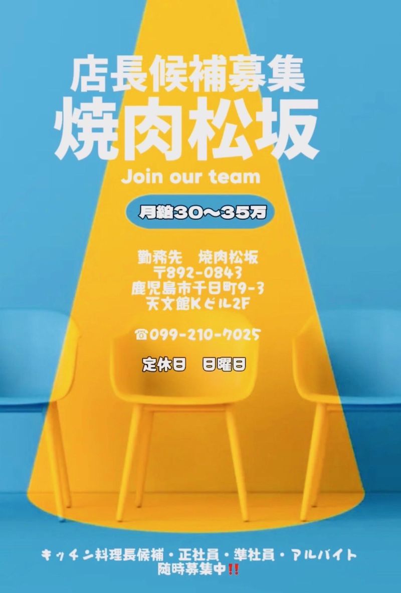 仕事内容 ☆☆☆積極採用中☆☆☆ 7月中旬にオープンしたばかりの 天文館にある「焼肉松坂」にて キッチンスタッフ(正社員)を 募集します! お気軽にご応募ください♪ お仕事内容は、 キッチンでのお仕事全般 (盛り付け・調理など)です! 飲食店での勤務経験がある方は、 もちろん優遇します! キッチンでのお仕事で接客はないので、 接客が苦手な方でも大丈夫◎ 日曜日が定休日になります。 ☆週休2日制☆ 夕方以降の勤務なので、 朝が苦手な方にもおすすめ◎ お休み希望には柔軟に対応しますので、 気軽に伝えてくださいね☆ 「まずは話を聞いてみたい」だけでも大歓迎☆ お気軽にご応募ください!