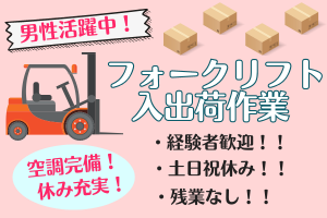 インフォメーション 髪色自由で残業なし!土日祝休みの週5日勤務 空調完備で働きやすい職場です フォークリフト免許をお持ちの方活躍中 男性活躍中のお仕事です 専任の担当者がしっかりフォローいたしますので 気軽に相談していただけます 心配なことや不安な事は何でもご相談ください! アピールポイント アフターフォローもしっかり!! 不安な事、わからない事、どんな些細な事でも構いません。ご相談ください。 すべて担当者がフォロー致します。 私たちは働いて頂く方、一人ひとりを大切に、安心して働いて頂くために全力を尽くします! 自分力バロメータ 協調性