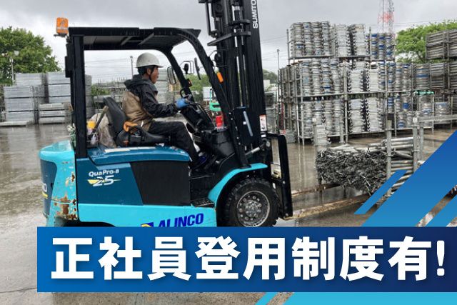 職種補足 【フォークリフトオペレーター】建築資材の検品・仕分け・フォーク作業、入出庫確認作業 スタッフの声 <先輩スタッフの声> 定年退職後もまだまだ働きたいと思い 応募・入社しました。 今思うのは「働ける場所がある!」ということ ここは平均年齢60歳、最年長の方だと80歳と、 長く安心して働けるのが魅力です。 仕事も、お客様からご依頼を受けた種類の資材を 必要な個数分まとめて、それを運ぶ。 「この形の資材はこんな風にまとめたらもっと多くまとめられるな」 「この資材はこんな風に運べばもっと楽に運べそうだな」 など、いたってシンプルな作業なので ちょっとした工夫が活きたり、 それを仲間に共有するのが楽しかったりしますよ。 雇用形態 アルバイト・パート 学歴 不問 社会保険 健康保険あり,厚生年金あり,雇用保険あり,労災保険あり 試用期間 あり 1ヶ月 時給1,226円 (同条件) 喫煙環境 敷地内禁煙(喫煙所あり) 担当者 採用係 受付先名 株式会社セブス 本社採用係 〒260-0808 千葉県千葉市中央区星久喜町883-1 TEL:043-306-7200 受付時間:09:00〜18:00 (月曜日~土曜日)