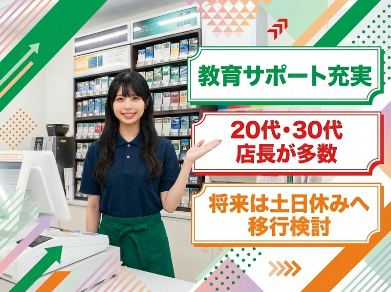 仕事内容 《 ここがポイント! 》 ●未経験スタート大歓迎! ●日勤メインの店舗運営職! ●丁寧な教育サポート体制あり ●月収30万円可&賞与年2回! ●接客、販売、仕入れ、販促、 店内オペレーションまで、 多彩なスキルが身に付きます! 日勤メインの店長候補を大募集! 正社員スタッフは全員日本人! 教育体制のもと成長できます! ―――――――――― 《 業務内容 》 ●店内での接客販売 ●品出し/商品陳列 ●商品の売れ行き分析 (マーケティング) ●商品の仕入れ・補充 (商品管理・在庫管理) ●棚割りの変更、 POP作成などの販促業務 店舗運営スタッフとして、 お店全体のオペレーションや お客様の満足度アップ、 売上アップのための施策の 立案・実行などを行います。 ―――――――――― 《 入社後は… 》 まずは先輩スタッフによる 教育サポート研修を行います。 【接客マナーなどの基礎知識】 【扱う商品やサービスの知識】 【接客の際のコツやポイント】 【商品陳列や発注のポイント】 【気を付けた方が良い点】まで 気になる部分を丁寧にお教えします。 セブン-イレブン本部監修の研修で、 先輩とマンツーマン形式で進めるため、 気になることがすぐに質問できます。 先輩によるフィードバックもあるため、 自分の成長や課題に向き合いながら 一歩ずつステップアップできます。 ―――――――――― 《 仕事のポイント 》 食品を中心に雑貨や衣類、 お酒、嗜好品、ホビー用品まで あらゆる商品を扱っているため、 多彩な知識が身につく仕事です。 商品の売れ行きを分析して ✅今月はこの商品を仕入れよう ✅この新作商品はいつもより多めに… ✅うちのお店だとこれもあると良いかな? と自分なりに試行錯誤しながら、 商品の発注や棚割りなどを 決めていけるのも当社の特徴です。 ―――――――――― 《 ひとり立ちしたら… 》 アルバイト・パートさんへの 教育サポートやフォローアップ、 指示出しなどの業務もお任せ。 スタッフ管理やシフト管理など、 店舗オペレーションの基礎となる 部分をイチから学んでいけます。 ―――――――――― 《 将来的には… 》 店長へステップアップし、 店舗全体のオペレーションに携わります。 当社は複数店舗を展開しており、 今後も出店を計画しています。 希望次第で新店舗の立ち上げに チャレンジできる可能性があるほか、 ゆくゆくは独立支援制度を使って、 自分がオーナーになる道もあります。