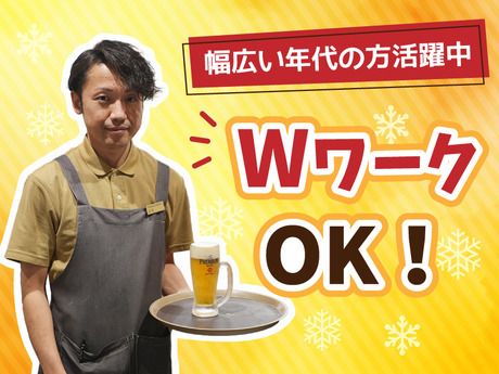 【保険制度】 雇用保険、労災保険、健康保険、厚生年金 待遇・福利厚生 【福利厚生】 ■社員登用あり ■制服貸与 ■食事補助あり ■社員割引あり ■バイク・車通勤OK ■昇給あり ■髪型自由 ■友達と応募歓迎