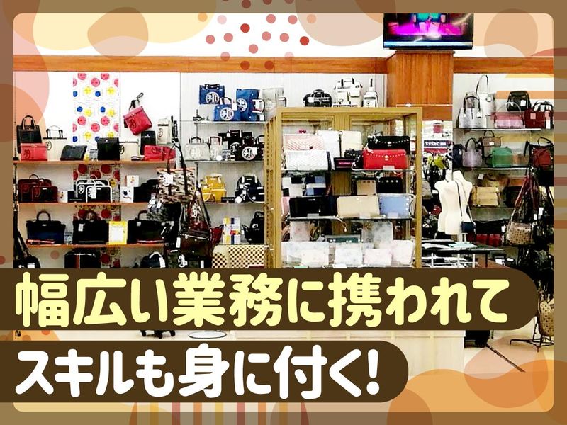 仕事内容 ⭐ノルマなし&残業なしで働きやすい! ⭐未経験歓迎◎ 知識が無くてもOK! ⭐幅広い業務にも携われてやりがいも! ✅ 具体的なお仕事内容は - ・お客様への接客、販売対応 ・商品陳列や在庫管理 ・スタッフのシフト管理 ・仕入れや店舗レイアウトの企画 ・新商品のアイデア出し など 幅広くお任せします! ▶研修制度ありで 未経験からでも安心スタート! ▶20代・30代・40代・50代と 幅広い年代が活躍中! 【ゆくゆくは…】 お仕事に慣れてきたらご自身で 店舗レイアウトを考えてみたり、 さらに慣れてきたら自分のアイデアを 取り入れたバッグを商品化して販売したり 幅広い業務をお任せしていきます! ✅ 未経験ok!しっかりサポート◎ - 経験や知識がなくても大丈夫! 最初はできることから教えますので 未経験でも大歓迎! *残業なし *販売ノルマなし *ゆったり接客できるシフト なので、今まで働いたことがない! という人も安心して飛び込んできて下さい。 「自分が商品化した商品が売れる瞬間が何よりのやりがいです。」 という従業員の声が多い当社で、 あなたの個性を生かして一緒に働きましょう!