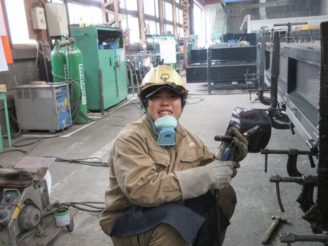仕事内容 アピールポイント  ̄V ̄ ̄ ̄ ̄ ̄ ̄ ̄ ̄ ̄ ̄ ★安定の還元率 前年度の賞与実績はなんと5.2ヶ月分! 頑張りはしっかり給与で還元。 ★住まいのサポート 単身寮1万円、家族寮2万円。 遠方の方や一人暮らしデビューも応援します。 ★ワークライフバランス 年間休日120日。 しっかり休み、しっかり稼げる環境です。 ★一生モノの技術 ダンプやトレーラーの製造に携わる、 やりがいの大きな仕事です。 仕事内容  ̄V ̄ ̄ ̄ ̄ ̄ ̄ ̄ ̄ ̄ ̄ 「自分たちが作ったダンプが街を走る」 そんな誇りを持てる仕事です。 図面に基づき、ダンプやダンプトレーラーの「荷台部分」 のアーク溶接(鉄・ステンレス)をお任せします。 《 具体的な流れ 》 1.図面を確認し、材料を準備。 2,アーク溶接機を使用して、パーツを接合。 3.歪みがないかチェックし、仕上げ。 ★未経験でも安心★ 資格取得支援制度があるため、働きながら 「溶接スペシャリスト」を目指せます。