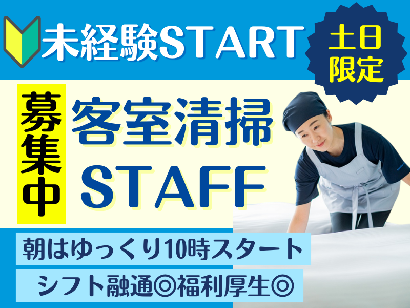仕事内容 土日、家族はそれぞれの予定。 私も、予定があっていい。 ▼土日の時間を、収入に▼ ✅ 平日は家事や学校行事を優先できます ✅ 10:00~15:00。夕方には家にいられます ✅ 時給1,340円 → 4月から1,410円にUP ✅ 接客ほぼなし。決まった流れの作業 ✅ 東三国駅すぐで通いやすい __________________ <お任せするのは…> ✅ 客室のベッドメイク ✅ バスルームや床の清掃 ✅ 備品の補充 ✅ タオルやゴミの回収 など ◎ 丁寧なマニュアルあり ◎ はじめは先輩とペアで安心 ◎ 清掃が初めての方も多数活躍中 毎回やることが決まっているから、 ブランクがあっても大丈夫。 ひとりでコツコツ進められる、 気を遣いすぎない仕事です。 \応募方法/  ̄ ̄ ̄ ̄ ̄ ̄ ✨直接採用担当とお話ししたい方 →電話での応募大歓迎! 06-6398-1045 までお気軽にお問い合わせください! ✨【応募】ボタンから応募の方 →エントリー後、担当者からご連絡差し上げます。