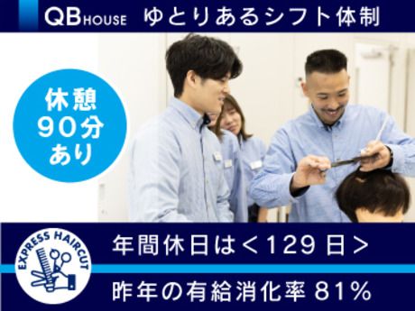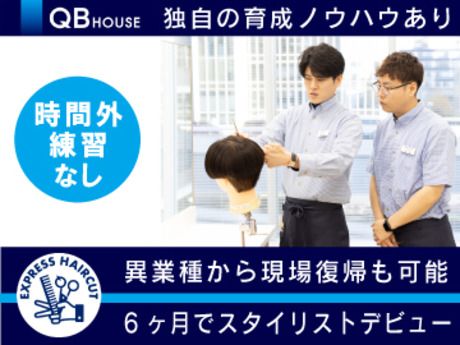 仕事内容 ヘアカット専門店のパイオニア「QB HOUSE」ならではのサポートあり! < お仕事復帰がしやすい >―――――――――― ★カット未経験者でも6ヶ月でスタイリストデビュー ★昨年入社の32%が異業種から現場復帰を実現◎ ★指名制度や売上ノルマなしでストレスなし! ★ノルマがなくても安定の月給制+昇給・手当あり ★毎日の休憩もしっかり90分取得できます◎ ★原則定時退社 ⇒ 勤務時間外の練習なし! ★土日祝休みも取得OKな希望休が月に3日あり! ★役職・皆勤・地域・ダブルライセンス手当あり ★マネジメント職や海外勤務などにチャレンジ可能 ★Uターンや一人暮らし希望の方にサポートあり! ──────────────────────── QB HOUSEが5か年で150店舗の拡大を計画!業績好調を背景に、スタイリストを大募集! < 仕事内容 >―――――――――――――――― ヘアカット専門店「QB HOUSE」での ヘアカット業務をお任せします。 カット専門店なのでシャンプーやカラー、パーマ、 シェービング等はなく、圧倒的な集客数を誇っているため スタッフ自ら集客や販促活動を行う必要もありません。 お客様一人ひとりに集中して接客できます。 ──────────────────────── 時間のクオリティに特化した 「お手軽で安心なヘアカットサービス」を 提供するカット専門店「QB HOUSE」を 日本中・世界中で展開しており 東証プライム市場に上場の当社。 国内スタイリスト数2000名以上という規模を誇りながら、 スタイリスト1人あたり平均30人/日の入客数を維持。 個人で集客をせずとも常に来店数が安定しています。 ──────────────────────── STAFFインタビュー 静岡店勤務・Akiyama/2017年入社 < 個人経営のサロンから転職 >―――――――― 早くカットを覚えたかったのですが、 4年間働いてもなかなか先が見えず…。 そんな時にQB HOUSEの研修プログラムを知りました。 ……………………………………………… QB HOUSE店舗のスタッフさんは同じように カットしているように見えても、 お客様一人ひとりに合わせてやり方を 少しずつ変えていて…。 「カットすげー!」って感動しました。 ……………………………………………… 入社するまでお客様をカットしたことがなかったので、 「こんなに喜んでもらえるんだ」 とカットの楽しさを感じられるようになったのが、 一番嬉しいですね。 ────────────────────────