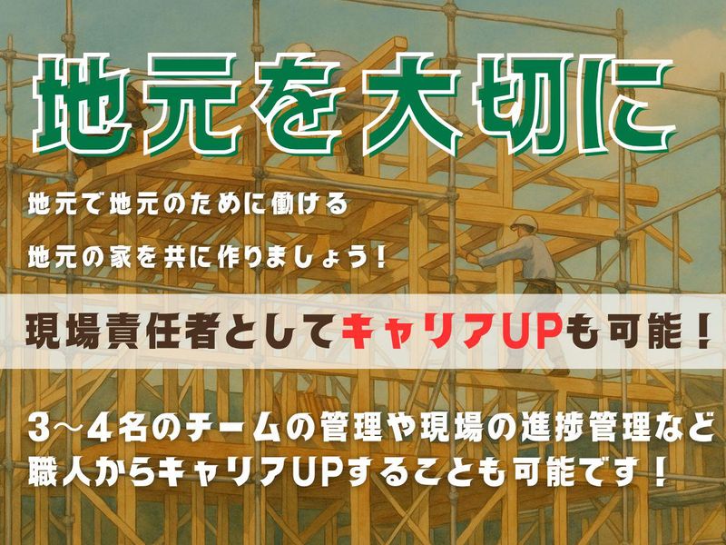 求めている人材 【こんな方にピッタリ!まずはご相談ください】 ✅毎日同じ作業に飽きてしまった方 ✅頑張っても給料が上がらないと感じる方 ✅将来に安心できる技術を身につけたい方 ✅今の仕事を一生続けられるか不安な方 ✅学歴や年齢に関係なく挑戦したい方 ✅ものづくりが好きな方 ✅プラモデルやミニ四駆を組み立てた経験がある方 ✅近い将来年収500万円以上を稼ぎたい方 ✅大工や建築業界に興味があるが不安を感じている方 ✅1.2年以内に月収30万円以上を稼ぎたいが、資格や経験がない方 一つでも当てはまる方は、ぜひご連絡ください! <先輩からの一言> 最初は覚えることがたくさんあって、特に朝が少し早いのが大変に感じるかもしれません。 朝が苦手でも大丈夫!だんだん慣れていきますよ(笑)。 私も未経験からのスタートでしたが、2~3ヶ月もすれば「次はこれをやるのかな?」と自然に次の作業が見えてくるようになります。 焦る必要はありません。私たちは一人ひとりのペースに合わせて、じっくりと教えていくので安心してください。最初は誰でも不安ですが、みんな同じ道を通って成長してきました。あなたもきっとできるようになります!