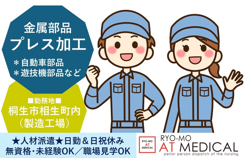 勤務地 桐生市相生町<プレス加工会社> 群馬県桐生市相生町<プレス加工会社> *職場見学OK *マイカー通勤可 *駐車場完備