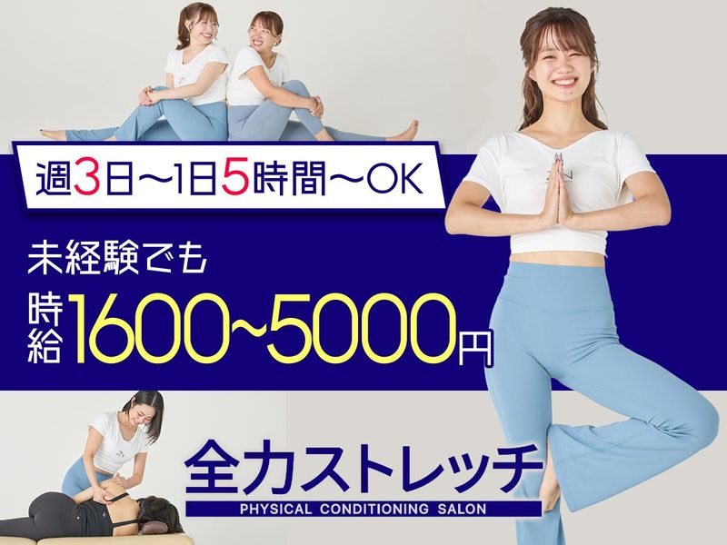 求めている人材 ✨トレンドや個性を大切にする職場 髪型・ネイル・タトゥー自由など、スタッフの「今の自分らしさ」を尊重する職場です。 20代〜30代前半のスタッフが中心となり、SNSの発信や最新の美容・健康トレンドを取り入れながら活気に溢れたお店づくりをしています。 スピード感のある環境で、同世代の仲間と切磋琢磨したい方にぴったりの環境です。 ⭐未経験・学⽣・フリーター⼤歓迎! ⭐接客・業界経験ゼロでもOK! ⭐Wワーク・副業もOK! ・経験者歓迎 ・無資格OK ・ブランクOK ・学歴不問 ✅以下のようなキャリアをお持ちの⽅も経験を活かせますよ! 他店ではヨガ・ピラティスのインストラクター、パーソナルトレーナー、リフレクソロジー、マッサージ、ネイリスト、スポーツジム受付、ダンサー、 美容部員、アパレル販売員、コンビニ店員、飲食店店員、カラオケ店員、法人営業など異業種・異職種からの転職者多数在籍 ・。・。・。・。・。・。・。・。。・。・。・。・。・。・。・。・。・。 ✨こんな⽅にぴったりの仕事です!✨ 「⾃分をもっと成⻑させたい」 「新しいスキルを⾝につけたい」 「⼈の笑顔を⾒ると嬉しい」 「誰かのために全⼒を尽くしたい」 「明るく元気な接客ができる」 「会話が好き」 「⼈と関わる仕事にワクワクする」 「ポジティブにチャレンジできる」 「素直に学び続けられる」 「美容や健康、カラダづくりに興味がある」 「相⼿⽬線で物事を考えられる」 ========== <スタッフインタビュー> ▶「全力ストレッチ」で働く魅力は?  ̄ ̄ ̄ ̄ ̄ ̄ ̄ ̄ ̄ ̄ ̄ ̄ ̄ ̄ ̄ ̄ ̄ ・業界内1の高給 ・頑張りがお給料にしっかり反映される ・「元気をもらいに来たよ」「これからも体を任せたい」とお客様に言ってもらえる ・早くからキャリアアップができる ・好きなものにお金を使える (洋服・鞄・コスメ・推し活・旅行など) ・自分に自信が持てるようになる ・自分の体のケアができるようになる ・シフト自由でプライベートも充実できる ・様々な人と出会えて人脈が広がる