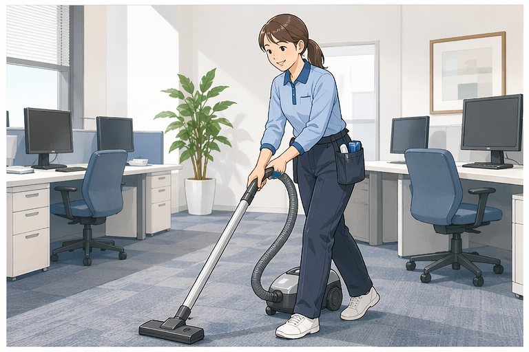 仕事内容 【この仕事のポイント】 ✨未経験でも家事の延長線上でできる仕事 ✨接客なし!コツコツ集中ワーク ✨健康維持のために続ける人も! ~具体的な仕事内容~ ◇「いつもキレイで気持ちいい」を作るお仕事 裏方からオフィス環境を支えませんか? 企業オフィスビルや宿舎内にて、共用部(廊下・階段・トイレなど)の清掃業務をお任せします。 「コツコツ作業が好き」「運動不足を解消したい」という方にピッタリの環境です! ~具体的な作業内容~ ✅床の清掃 掃除機掛けやモップ拭き、専用の拭き上げ。 ✅水まわり清掃 トイレや給湯室の清掃、消耗品(トイレットペーパー等)の補充。 ✅ゴミ回収 各フロアのゴミ箱の回収・仕分け。 ✅外周・エントランス 玄関周りの掃き掃除やガラスの拭き掃除。 \コツコツ黙々作業/ 基本的にオフィスを利用する方とすれ違う程度の挨拶以外、接客はありません。 自分のペースで黙々と作業に集中したい方に最適です。 適度に体を動かすお仕事なので、「座りっぱなしより、少し動いている方が楽」というスタッフからも好評です。 ~入社後の流れ~ 研修期間中は先輩スタッフと一緒に作業を行います。 「どの道具を使って、どの順番で掃除するか」をイチから丁寧にお教えします。 特殊な機械を使う作業はほとんどなく、ご家庭の掃除の延長でスタートできる内容です。 ※現在活躍中のスタッフも、ほとんどが未経験からのスタートです!