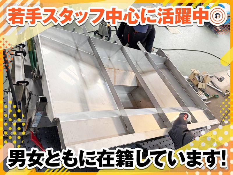 仕事内容 \ この求人のオススメPOINT / ✅増員募集!未経験の方も応募OK! ✅高日給で月収25万円も可! ✅日勤のみで月平均残業20h程度! お客様から寄せられる 「こんな製品を作ることはできますか?」 というご相談に、長年応え続けてきた当社。 今回は、製缶・製造を担当しながら、 お客様の「困った」を一緒に解決していく 新しい仲間を募集します! ⭐働きやすい環境づくりを 大切にしています! ①休みが取りやすい 日祝休みに加えて長期休暇もご用意! 有給休暇も気軽に取得しやすい雰囲気を 大切にしている会社です。 急なお休みが必要になった場合でも、 周囲が協力し合いながら対応しています。 お互いに支え合いながら働ける、 安心感のある職場ですよ♪ ②評価制度が分かりやすい 評価基準を明確に設定しており、 内容は誰でも確認できるようにしています。 「どの業務を覚えれば 昇給・昇格につながるのか」が分かるため、 目標を持って日々の仕事に取り組める環境! 同業界から転職してきた入社3年目の社員は 「前職では上司の主観による評価が大きく、 将来のキャリアが見えにくいと 感じていました。 しかし今は客観的な基準があるので、 目標を持って前向きに働けています!」 と言ってくれています♪ ======= 【主な仕事内容】 主に商業機械の製作を中心に、 機械メンテナンスの作業にも対応! ステンレス・アルミ・鉄などを使用した 製缶品や設備、クレーンなどの製造に 携わります。 ▼具体的には… ■金属加工 ・銅板の溶断 ・穴あけ、折り曲げ加工 ・溶接作業 ■製缶工事 図面をもとに材料や一次加工部品を 仮組みし、溶接による歪みの 調整や修正を行います。 製品によっては組立作業まで 担当することもあります。 ■溶接作業 TIG溶接、半自動溶接、 アーク溶接などの技術を使い、 金属同士を接合します。 ステンレスやアルミ製のタンク、 架台、食品加工機械、搬送機械など、 さまざまな機械の製作に関わる仕事です。 ======= 当社の職場は比較的若いスタッフが中心! 和気あいあいとした雰囲気があります。 未経験でも安心して始めていただけるよう 丁寧に指導する体制を整えています。 さまざまな機械を一から製作するため、 多くの知識や技術を身につけられる環境です。 スキルアップを目指したい方にも ぴったりの仕事ですよ♪ 2D・3DCAD(AutoCAD、SOLIDWORKS) を使用した製図スキルを学んだり 玉掛け・クレーン・各種溶接などの 資格取得も会社がサポート。 働きながらステップアップも可能です!