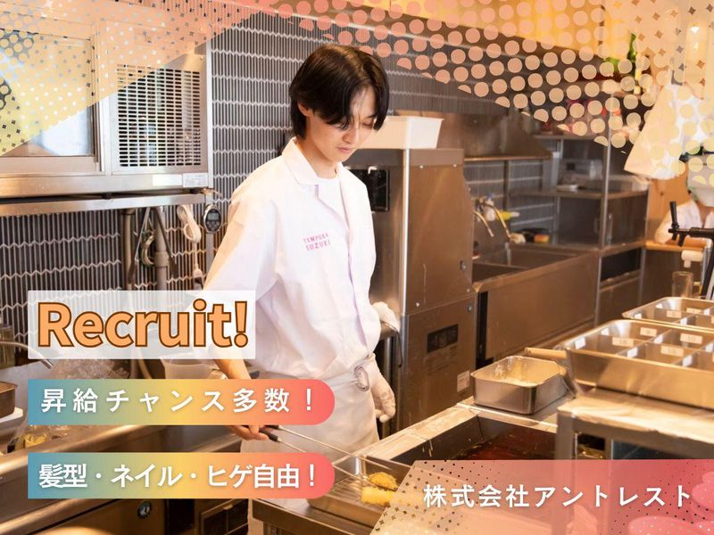 仕事内容 ★゜・。・゜☆゜・。・゜★゜・。・゜☆ <<成長企業アントレストでキャリアを磨く>> 「“温かいバトン”を街へ届ける仲間を募集します!」 ★゜・。・゜☆゜・。・゜★゜・。・゜☆ \アントレストで働くポイント/ ★ 経験より“人の温かさ”を大切にする会社 ★ 店長へのキャリアアップが最短距離 ★ 週休2日制/各種手当・福利厚生が充実 ★ 髪色・ピアス・ネイル・ヒゲOKの自由な社風 ★ BBQ・スポーツ・生産者訪問などイベント多数 ★ 理念「PASS THE HOT BATON」に共感できる方歓迎 ································ 【仕事内容】 キッチン業務を軸に、店舗運営・マネジメントにも関わっていただきます。 【具体的には…】 ◆仕込み・調理・盛り付けなどのキッチン実務 ◆季節メニュー・日替わりメニューの提案・試作 ◆食材管理・原価管理(FLコントロール) ◆スタッフ育成・シフト管理 ◆衛生管理・オペレーション改善 ◆マネジメント業務全般 など まずはキッチンで味づくり・オペレーションを学び、 ゆくゆくは“店づくり全体”に関われるポジションへ成長していただきます。 ································ 【アントレストってこんな会社!】 〜理念「PASS THE HOT BATON」〜 アントレストは「温かいバトンを街へつなぐ」ことを理念に掲げ、 美味しい料理・快適な空間・気遣いあるサービスを通じて、 “少し気持ちが温かくなる瞬間”を生み出す会社です。 ◆ 社名の由来 entrest= ・アントレプレナー(起業家) ・レストラン ・EST(最上級) を掛け合わせた造語。 「飲食で最高の起業家集団になろう」という想いが込められています。 ◆ 誕生ストーリー 代表は幼い頃から“起業”への強い憧れを抱き、 東京でベンチャー企業の現場を経験する中で 「いつか仲間と一緒に事業をつくりたい」という想いを強くしていきました。 その後、飲食業で働いていた仲間とのご縁がきっかけとなり、 “地域に本当に必要とされる店づくりをしたい”というビジョンが明確に。 おしゃれさや流行ではなく、 「その街にあったら嬉しい場所」をつくることを大切にし、 仲間の持つ魚の知識・経験を活かした業態が生まれました。 これが、アントレストの始まり。 創業当時から変わらないのは、 “人の温かさで店をつくり、店の温かさで街を良くする”という考え方で、 現在の理念「PASS THE HOT BATON」は、 この原点から自然に生まれたものです。 ◆ MISSION アントレストでは、 「お店は街へのプレゼント」 「料理はお客様へのプレゼント」 「賄いは仲間へのプレゼント」 という想いを大切にしています。 誰かを喜ばせるために働く── その考え方がすべてのサービスの根底にあります。 賄いは単なる食事ではなく“学びや経験というプレゼント”でもあり、 仲間同士が自然に支え合える温かい文化を育てています。 社長=校長先生 店長=担任の先生 と思っていただいて構いません。 スタッフ一人ひとりの人生に寄り添う存在でありたい、 という独自の教育観を持っています。 店長はスタッフにとって身近な存在であり、 日々の関わりが“その人の未来の価値観を左右する”と本気で考えています。 だからこそ、怒るのではなく、愛情を持って叱り寄り添い、押しつけるのではなく気づきを与える。 “温かい先生”が多い組織だから、自然と優しい空気が広がります。 この文化が、 アントレストが大切にする「PASS THE HOT BATON」── 温かさのバトンをつなぐ理念と深く結びついています。 ◆ VISION 「あたたかい人 → あたたかい店 → あたたかい街」へ 社員もアルバイトも理念カードを携帯し、日報で理念を共有しています。 その積み重ねにより、 “どう行動すべきか”ではなく “どうしたら相手が喜ぶか”を自然に考えられるスタッフが育ちます。 この小さな温かさの連鎖こそ、 アントレストが街にもたらしたい価値であり、 働く人たちの誇りでもあります。 ································ 【ここが魅力!】 ◆ 裁量あるメニュー開発ができる 日替わりメニューはスタッフが自由に提案可能。 実際に作って提供し、お客様の反応も見られます。 ◆ キャリアアップが明確 一般社員 → 副主任 → 副店長 → 店長 → マネージャー 最短距離で成長できる評価制度を整備。 ◆ 温かく自由な社風 元気な声より、“素の優しさ”を大切にする接客方針。 髪色・ネイル・ピアス・ヒゲOKで個性を活かせます。 ◆ イベント多数で仲が良い 野球・バスケ・フットサル、 醸造所などの生産者訪問、 月1の店舗飲み会(3,000円会社補助)など。 ································ 【働くお店:天ぷらすずき 蒲田】 2017年5月10日に 蒲田駅近くに開業した天ぷら専門店。 職人が目の前で一品ずつ揚げる昔ながらの "江戸前スタイル"を大切にしています。 独自に配合したごま油を使うことで、 衣は軽やかで香ばしく、素材本来の旨味を 引き出すことにこだわっているのが当店。 カウンター越し