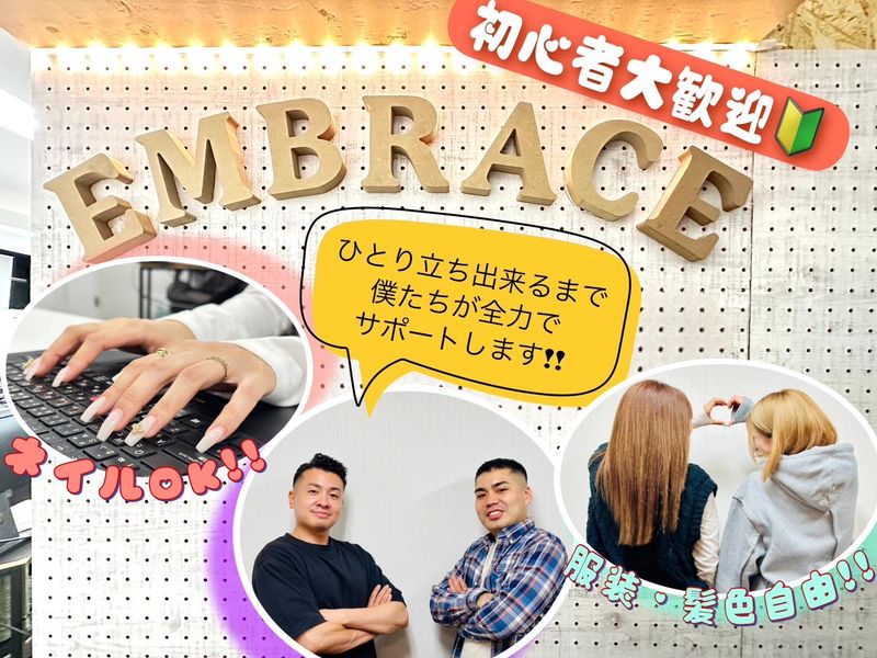 職場環境 日々の頑張りがきちんと反映されるので ノルマがなくても自然と頑張れちゃう! お洒落しながら綺麗なオフィスで 楽しく働けますよ♪ 喫煙所:喫煙所あり(屋内) 敷地内に喫煙スペースあり