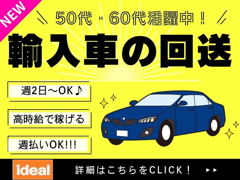 仕事内容 / 60代活躍中! \ 安心感抜群★輸入車正規ディーラーで 回送スタッフ大募集! ┏━━━━━┓⭐未経験・ブランクOK ┃ココに注目┃⭐便利な週払いOK❗❗ ┗━━━━━┛⭐平日週3日! ──────────── ▶お仕事内容はこちら✨ ──────────── ✅構内での車の移動 ✅代車の洗車 ✅修理・点検の車の引取・納車 *未経験も安心な丁寧なサポート体制あり! 普段車を運転する方なら難しい内容はなし! 安全運転ができる方なら大丈夫です◎ ───────────── ▶働きやすさのポイント✨ ───────────── ⏹平日週3日の勤務で働きやすい♪ 自分の都合に合わせて 希望を申請できるので プライベートとの両立も抜群❗ ⏹便利な週払い制度あり! 「急なお誘いでお小遣いがピンチ」 「思わぬ出費が発生してしまった」 そんなちょっとのピンチも週払いで解決⭐ 気軽にご利用ください✨ ──────────────── ▶理想のワークスタイルを実現✨ ──────────────── あなたの様々な希望を可能な限り実現! 働き方や環境に関してもご相談ください☆ ✋「短期がイイ」「長期がイイ」 ✋日払いは無理でも、せめて週払いを! ✋駅チカの好立地で働きたい! ✋期間限定での勤務を考えている! ✋残業ナシの環境で働きたい! ✋勤務日数相談可能な仕事がイイ! ✋負担の少ない日勤のみがイイ! ✋週休2日制で無理なく働きたい! etc...まずは希望を教えてくださいね◎ 学歴不問!ブランクOK!スキル不要! フォロー体制も充実しています。 勤務開始日相談可能!即日勤務もOK! ノルマなしで長期安定勤務も叶います。