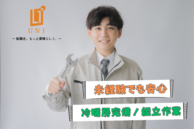 仕事内容 【未経験者でも大歓迎!簡単モクモク作業♪】 電動ドライバーを使って簡単な部品を取付していただく業務になります。 冷暖房完備の工場内で機械音などもなくモクモクと作業ができる職場です。 全くの未経験の方でも先輩が1から丁寧に指導していただけるので、安心して作業に取り組めます✊ <担当営業からのおすすめポイント> 安定してお仕事ができる職場です 静かな現場で周りの方が1からしっかり教えてもらえます やる気次第で正社員登用あり <就業前の職場見学も可能です> 職場見学も随時開催中! 実際に職場を見てからゆっくりお考え下さい。 もちろん、我々もご同行しますのでご安心を♪ ⭐ユニファーストで働くメリット⭐ ユニファーストでは充実した福利厚生や、キャリアアップの為の研修制度など、 将来性を持って長く働けるよう、様々な制度があります! また、お仕事での悩みや生活に関するお困りごとも気軽に相談できる専用窓口もご用意◎ 「少し興味がある」「具体的な仕事内容は?」など、気になることがございましたら、お気軽にご連絡ください!