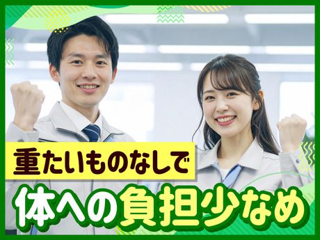 仕事内容 【仕事内容】 日勤内の2交替だから朝のんびりできる日と 夕方からのんびりできる日があってオフが充実! 残業もほぼナシなのでプライベートを優先したい方にもぴったりです 次世代太陽電池製造の機械オペレーター業務 <具体的な仕事内容> ・太陽電池をつくる機械に材料をセットし、 ボタンを押して動かしたり、表示された数字や画面をチェック ・できあがった部品を取り出して、キズや汚れがないかを確認 ・部品を組み合わせて製品を作り、梱包作業 ・作業内容や数字をパソコンに入力、記録用紙に書き込みなど ・機械の調子が悪いときは、まずは簡単な確認をして、 必要があれば専門のスタッフに連絡 *いくつかの工程があり、いずれかの工程に配属されます。 手作業もありますが、機械操作とその動作確認がメインです。 *一部の工程では、原材料に少量の鉛があるため クリーンウェアの上に防護マスクを着用します \まずは補助業務からスタート!/ 手順書通りに行う単純作業。 大きな動きはほとんどなく、同じ作業の繰り返し◎ OJT研修があり、丁寧に教えてもらえる環境なので 未経験の方もご安心ください♪ 【アピールポイント】 ★重たいものナシ ★コツコツ・モクモク作業が好きな方にオススメ ★空調完備で快適!クリーンルームと呼ばれる清潔な作業環境です ★直接雇用のチャンスあり 急成長中のスタートアップ企業!長期安定して働きたい方大歓迎◎ ★職場見学可能 実際の仕事内容や職場雰囲気が見れるので安心スタート! 【20~30代の男女が活躍中です!】 先輩も元々はほぼ全員が未経験スタートなので フォロー体制もしっかりしており安心して勤務できます! 質問もしやすい雰囲気なのでお気軽にどうぞ! 同時スタートの仲間も多数います! <勤務地> 京都府久世郡久御山町(派遣先)