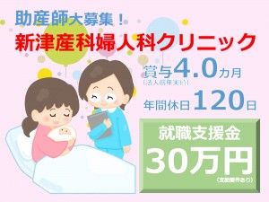 インフォメーション 就職支援金30万円☆育休からの復帰率ほぼ100%!!これから産科婦人科のキャリアを重ねたい方ぜひご応募ください☆ 医療法人社団 晴和会(新潟市)は、1998年に産科婦人科クリニックから始まり、療養型病院、介護老人保健施設、通所リハビリ、居宅介護支援事業所、訪問看護・訪問介護ステーション、住宅型有料老人ホーム、保育園など、多彩な医療・介護・子育て支援サービスを地域に提供する包括的な医療法人です。 少子化・超高齢化が進む中、「患者様・入所者様・利用者様・ご家族様が望まれるもの」を追求する姿勢を大切にし、地域医療と在宅介護の両方に貢献しています。 働きやすい環境を整えるため、子育て支援「くるみんマーク」取得や定年年齢65歳をいち早く導入。介護職を安心して志す方のため、奨学金制度や資格取得奨励制度などのキャリア支援制度などもあります。 また新津産科婦人科クリニックの助産師・看護師には最大30万円の就職支援金制度があり、初めての方やブランクのある方でも安心しやすい環境です !