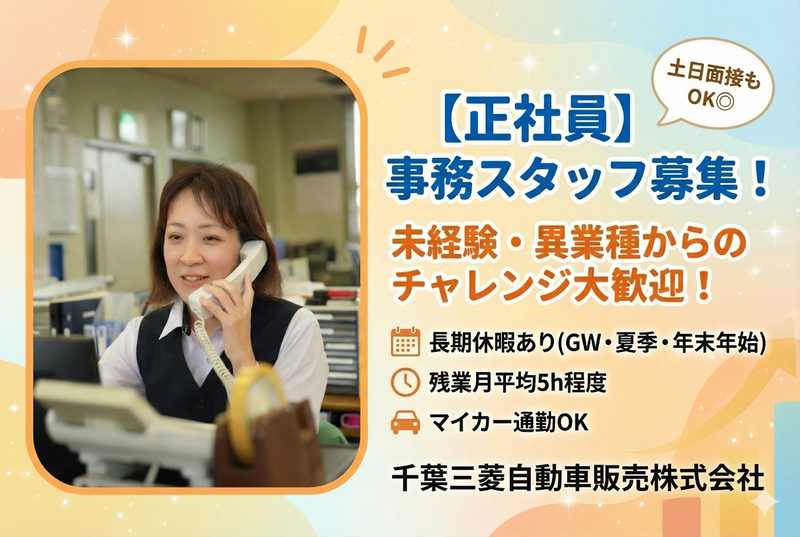 求めている人材 < 応募条件 > ✅未経験/第二新卒歓迎 < 活かせる資格・経験 >※必須ではありません ◎普通自動車免許(AT限定可) ◎オフィスワークの経験 ◎カフェやファミレスなど飲食店での接客業務経験 < 1つでも当てはまる方はご応募を!> ◆クルマが好きな方 ◆安定した基盤のもと収入UPを目指したい方 ◆フットワーク軽く行動できる方 ◆チームワークを大切にできる方 ◆ワークライフバランスを大切にしたい方 ◆地域に根ざし、地域に貢献できるキャリアを描きたい方 ⭐経験や資格より、人柄を重視した採用を実施しております。異業種からのチャレンジも大歓迎です!