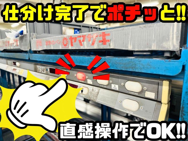 仕事内容 大手有名メーカーの パン、和菓子、惣菜などの 食品の仕分け作業をお任せします!! 扱う商品は軽い食品が中心なので 体への負担も少なく長く勤務出来ます♪ また、倉庫内は温度管理が徹底されており、 夏は涼しく、冬は暖かい 働きやすい環境です。 【具体的には…】 ・パン/和菓子/惣菜などを 店舗ごとに仕分け。 ・食品をトレー(プラスチックの箱)に 入れていく作業。 【"簡単"仕分け作業の流れ】 ①商品を機械に通す。 ②光っているボタンに補充する 個数が自動表示されます。 ③表示された数だけ商品を箱に入れる ④入れ終わったらボタンを押すだけ!! 【POINT】 ★商品や個数を覚える必要ナシ!! ★機械の指示通りに進めるシンプル作業!! ★業界未経験の方でも安心の単純作業!! ★早い方なら2週間で仕事に慣れます!!