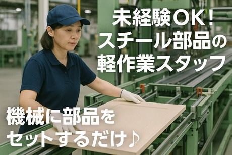 仕事内容 <インテリア製品の部品製造♪> かんたん&ラクラクな軽作業ばかり◎ 主な業務は… ☆機械へ部品をセット ☆完成品の 組立・検査 ☆出荷前の 梱包 重たい作業はほとんどありません! 未経験や女性スタッフも多数活躍中♪ \ポイント★/ *丁寧なサポート体制♪ *20代~50代までの男女活躍中! *冷暖房完備のキレイな工場◎ *作業スペースも整理整頓されています!