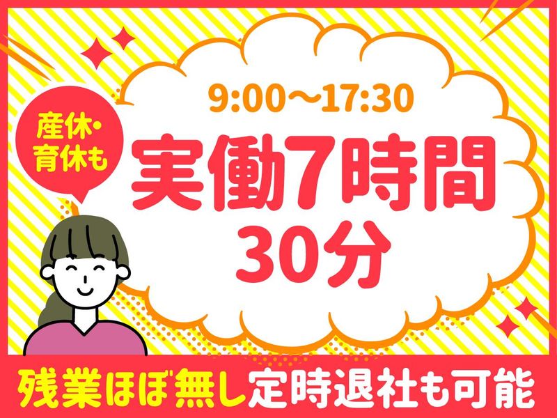 固定時間制 勤務時間詳細 <勤務日数> 平日のみ週5日 <勤務時間> 9:00~17:30(実働7時間30分)