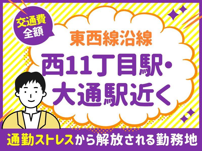 交通・アクセス 地下鉄「西11丁目駅」徒歩2分、市電「中央区役所前」徒歩2分、地下鉄「大通駅」徒歩5分 ※交通費全額支給