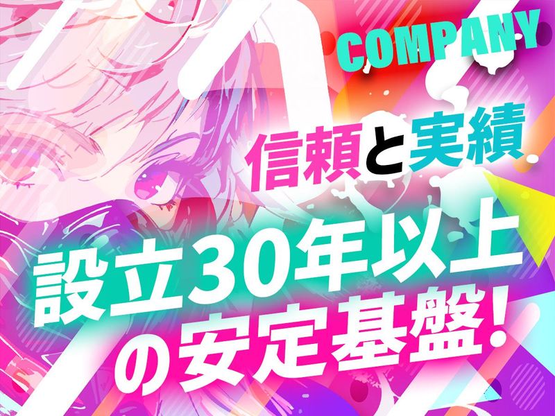 仕事内容 ━━━━━━━━━━━━━━━━━━━━ 「好き」で終わらせない。 仕事として通用するクリエイターへ。 ━━━━━━━━━━━━━━━━━━━━ アニメーションやキャラクター制作を 憧れや趣味で終わらせず、 現場で求められる“本物の力”として身につけてほしい。 私たちは、そんな想いで人を育てています。 ✨設立30年 キャラクター・アニメーション・映像制作を 本業として続けてきた制作会社です。 ✨アニメーション制作 500作品以上 有名IP関連コンテンツや 大手企業からの案件実績も多数。 第一線の制作現場で、 信頼と実績を積み重ねてきました。 安定した事業基盤があるからこそ、 即戦力前提ではなく、 育成を前提とした採用を行っています。 リアルな制作現場で成長したい方を、 私たちは本気で歓迎します。 遊技者の感情を動かす 映像体験をあなたの手で 「当たりの瞬間」や「先読み演出」など、ワクワクする液晶演出を生み出してください。 視覚的にインパクトのある演出を作り上げ、プレイヤーに驚きや興奮を与える重要な役割を担います。 あなたのクリエイティブな力で、最大限の魅力を引き出していきましょう! === 【具体的には…】 ■液晶演出の世界観設計/コンセプトアート制作 ■キャラクター/背景/図柄/UIなど2D素材デザイン ■AEを用いた簡易モーションや演出指示書を作成 ■演出意図に沿ったレイアウトやカラーの調整 ■チームや外注先との連携や進行管理 演出全体を意識した提案なども歓迎される環境です。 これまでの経験やアイデアを存分に発揮いただけると思います! 《使用ソフト・ツール》 After Effects/Photoshop/Illustrator/CLIP STUDIO PAINT/SAI/Spine(2Dアニメーション)/Live2D/Unity(演出確認・連携用)など 《当社環境について》 ◆毎月開始の技術共有会・レビュー制度 ◆スキルや得意分野に応じて柔軟にアサイン ◆選任の制作進行がスケジュールを管理 ◆フレックス制度導入&残業月平均10h以下 ◆全ての制作チームが本社に集約! ┗事前に学び合える社風が魅力 リモートではなく、リアルなコミュニケーションを取りながらチーム制作にこだわっています。 仲間と一緒に刺激を受けながら更なるスキルアップも叶います! ■ ■ ■ チームの一員として、共に成長し続ける文化があります。 新たな一歩をここから踏み出してみませんか?