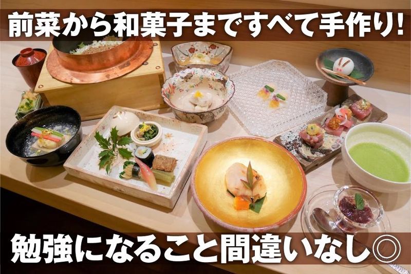 仕事内容 <嬉しい給与手渡し★週1日~、1日3h~OK!> <着物で働ける!ココだけの経験が積めます> <まかない有!髪色・髪型▶派手でなければOK!> ~完全予約制でコースのみ!落ち着いた日本料理店~ \★POINT★/ ●4名がけの座敷×2、カウンター8席と こじんまりした大人な雰囲気の店内* ●お客様も落ち着いた方が多く、 接待やお祝いなどのシーンでのご利用多数! 常連さんも多く、焦らずに接客できます。 〈お仕事について〉 座敷のお客様へ配膳や、 食器下げなどホール業務をお任せします! 状況に合わせて調理補助(ドリンク作り・お皿の準備・食洗器での洗い物など) のサポートもお願いします! 簡単なことからお願いするので 徐々に覚えていきましょう★ 分からないことはお兄さん的存在の店主や 先輩スタッフに聞けるのでご安心下さいね! 着物は3回程で覚えられるほど 簡単に着つけ出来ますので心配はご無用◎ ~店主についてちょこっと紹介…★~ 穏やか&優しい性格で親しみやすい店主。 もともと飲食店で料理長として働いていましたが、 縁あって自分のお店を持つことになりました! 下積み経験があるので、 スタッフの働きやすさも日々考えてお店作りをしています! だから、初バイトの大学1年生も安心して働けていますよ! 「自分のことより人のこと」がモットーの店長の下で、 いいお店を一緒に作っていきましょう!