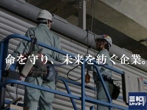 インフォメーション 半世紀を越え、時価総額1兆円の成長し続ける安定した企業で施工スタッフとして活躍しませんか?研修制度でフォローも万全◎ _/_/_/_/_/_/_/_/_/_/_/_/_/_/_/_/_/ 取付技術員として活躍する楽しさ、安定感、収入 どれもココで手に入ります! _/_/_/_/_/_/_/_/_/_/_/_/_/_/_/_/_/ シャッターといえば「三和シヤッター」! と思っていただけるほど、建築業界においてシェアを伸ばしている当社。 社名を出すだけで「あの会社か」と分かっていただけるので、 取付技術員としても、とても仕事がやりやすいです。 アピールポイント 近年、自然災害への備えに対する注目も集まっており、 当社でも新製品を続々と世の中に生み出しています。 施工としての【やりがい】を感じながら活躍できます! ┌★軽量シャッターを普及させた確かな実績 └─────────────────── 日本において、軽量シャッターが 一般の店舗や住居に取り付けられ始めたのは、 高度経済成長期。 三和シヤッター工業は、時代の先駆けとして 1956年(昭和31年)に誕生し、 半世紀以上の実績を積み重ねてきました。 設立以来、金属製で防災・防犯性に優れている 「軽量シャッター」は瞬く間に普及。 現在の国内No.1シェアに至ります。 このように、当社の製品は、 確かな実績とブランド力があるため、 施工として自信を持ってカタチにできることが 大きなポイント! あなたも私たちの仲間になって、 「安全・安心・快適」を提案していきましょう。 ※この求人は推進案件です 自分力バロメータ 処理能力 応用力 判断力
