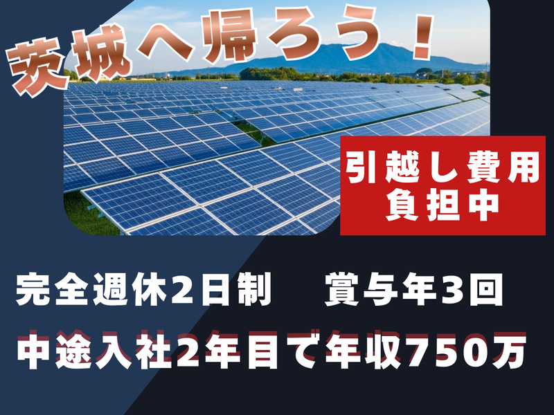仕事内容 《 茨城出張所急募 引っ越し費用一部負担キャンペーン実施中 》 ●引っ越し費用負担(規定あり) 上京したけど地元・茨城に戻って仕事をしたい方がいれば、今がチャンスです! 《 急成長のイノベーティブカンパニーで営業職募集 》 ●テレアポ・ノルマ一切なし! ●賞与年3回!住宅手当あり!(規定あり) ●GW・夏季・年末の長期休暇あり ●北関東エリアの営業担当 《 仕事内容 》 土地の所有者様に対して土地活用のご提案をします。 《 具体的には… 》 (1)土地活用のご提案 リストに基づきDM送付済みです。 対象の地権者様宅へ訪問いただき、土地活用のご提案を行って頂きます。 訪問は営業車を使用して1日に30件程です。 訪問先のエリアは北関東(茨城・群馬・栃木)となり、滞在時間は平均10分程度になります。 50件回って1件開発用地を取得しています(あくまでも平均となります) 営業時間の大半は車での移動や訪問内容のシステム入力となります。 (2)近隣住民の方や地域自治会への開発挨拶 (3)事業採算性やシミュレーションの確認 (4)太陽光パネルを設置し、発電事業者へ提供(売り先は既に決まっています) (5)現地調査や社内システムへの入力作業など ◎業界未経験歓迎!研修&サポート体制! まずは、商品知識から営業手法を丁寧にレクチャーします。 先輩との同行からスタートし、徐々慣れていけばOKです! 多くの方が、訪問開始から1週間程度でアポイントを獲得しています。 当社の営業カリキュラムがしっかりと確立されているので 学んだことを誠実に実行できれば、必ず売れる営業になります! - 《 当社の魅力point 》 ◆業界トップ10入り 創業6年で達成した驚異的な成長スピード! 「5年以内には上場!」を目標に、 成長し続ける勢いのある会社です! ◆スピード出世 最短1ヶ月で新卒が主任へ昇格したスタッフも! 成果は給与や役職にしっかり反映します。 ◆将来性抜群 再生可能エネルギーを利用した、 SDGsに貢献する事業で、社会とともに成長を実感! ◆グローバルに展開 東南アジアを中心に、 海外へのソーラーパネル輸出事業も展開! 新しい事業領域へも積極的にチャレンジしています。