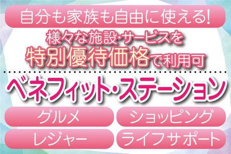 【保険制度】 雇用保険、労災保険、健康保険、厚生年金 待遇・福利厚生 【福利厚生】 ・社会保険完備 ・有給休暇 ・週払いOK(規定) ・交通費全額支給 ・車、バイク、自転車通勤OK ・無料駐車場あり ・制服貸与 ・髪色自由 ・ノーメイクOK ・食堂あり 【その他福利厚生】 ・定期健康診断 ・教育訓練制度 ・子ども手当あり ・結婚、出産、入学祝い金あり ・退職金制度あり ※各々、社内規定に基づく 【ベネフィット・ステーションの利用が可能】 ベネフィット・ステーションとは、 様々なシーンでご利用いただける 総合型福利厚生サービスです。 映画鑑賞やホテルディナー、宿泊施設 などの余暇・レジャー関連をはじめ、 日常で使えるフィットネスや 育児・介護支援、ライフサポートなど 約140万件以上の幅広いメニューを お得な価格で利用できます。 <サービス例> ・全国40,000以上の宿泊施設 ・全国30,000店舗以上の飲食店 ・全国約7,700ヶ所のスポーツクラブ など スタッフさんはもちろん、ご家族の方もお好きなだけ利用できます。