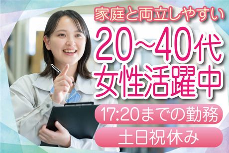 勤務時間 8:20~17:20 ◆日勤専属 ◆実働8時間 ◆残業なし ◆午前、午後に小休憩あり