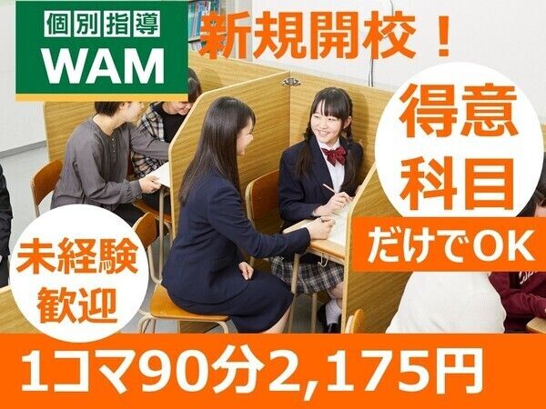 3月オープン予定の個別指導『WAM』練馬中村橋校/週1日~得意科目だけでOKの塾講師 小中学生対象に英語・数学などを教える個別指導塾講師 東京都練馬区貫井2丁目2-10昌栄第2ビル 1階 アルバイト・パート 求人の特徴 平日のみ OK 週 1 日から OK 大卒 交通費支給 ブランク OK フリーター歓迎 主婦・主夫歓迎 学生歓迎 未経験者歓迎 業界未経験者歓迎 経験浅め歓迎 友達と応募 OK 職場見学可 服装自由 業務内容 小学生から高校生を対象に、生徒1~2名に対する個別指導を行っていただきます。 研修制度も整っているので、未経験の方でも安心してスタートできます。 【勤務条件】 ・勤務時間:14:30~21:30の中で1.5時間以上 ・勤務日数:週1回から勤務可能 ■指導科目(指導科目は得意な教科のみでOK!) 小学生:国語、算数、英語、理科、社会 中学生:国語、数学、英語、理科、社会 高校生:古文・漢文、現代文、文系数学、理系数学、英語、物理、化学、生物、世界史、日本史、政治経済・公民、地理、小論文 ■こんな方に向いています♪ ・人と話すのが好きな方 ・コミュニケーション力を活かしたい方 ・子どもが好きで成長をサポートしたい方 \未経験の方も大歓迎!/ 研修制度もしっかり整っているので、安心してスタートできます◎ 小学生から高校生まで幅広い生徒が通うアットホームな学習塾です! 地域に根ざした運営で、未来ある生徒一人ひとりの成長をサポートしていきませんか? 職種 小中学生対象に英語・数学などを教える個別指導塾講師 雇用形態 アルバイト・パート 勤務体系 シフト制 リモートワーク制度 リモートワークなし