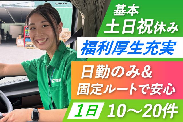 仕事内容 未経験からしっかり稼げる! 自分のペースで働けるルート配送のお仕事です。 「収入重視」「プライベート重視」 どちらも実現できます。 現在、20代・30代・40代・50代まで 幅広い年代の男女活躍中! (この求人のポイント) 〇準中型免許があれば未経験OK 〇日勤のみ&固定ルートで安心 〇一人一台の専用トラックあり 〇デジタコ・ドラレコ・バックカメラ完備 〇同乗研修ありで安心スタート 〇資格取得支援あり(中型免許・フォークリフトなど) 【仕事内容/正社員】 2tトラックでのルート配送業務をお任せします。 ・文具、工業製品、化粧品など ・大手百貨店や日用品メーカーの商品 ※重量物はほとんどありません 【配送エリア】 千葉市(稲毛区・若葉区・花見川区・美浜区・中央区) 四街道市、習志野市、八千代市 など 【配送件数】1日10~20件程度 【走行距離】約100km/日 【未経験でも安心の研修制度】 入社後は約1ヶ月間、先輩ドライバーと同乗研修を行います。 (※期間中は運転なし) 研修終了後も、不安があればしっかりサポート! 「一人で大丈夫」と自信が持てるまでフォローします! 【働き方について】 基本:土日祝休み(土曜は隔週出勤) 「完全週休2日制」も相談OK 日勤のみで生活リズム安定 プライベート重視の働き方も可能です! 【資格取得支援制度あり(規定あり)】 〇フォークリフト免許 〇中型免許(準中型からステップアップ) 働きながらスキルアップできます! 【応募について】 ・書類選考・筆記試験なし ・面接から最短1週間で結果連絡 ・在職中の方も、入社日相談OK! お電話でのご応募も受付中! お問い合わせのみでもかまいません! 少しでも気になったらお気軽にお問い合わせください。 TEL:043-216-6800(担当/採用係)まで あなたと一緒に働ける日を楽しみにしています。