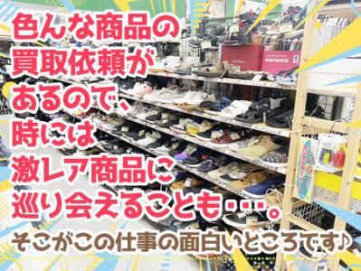 仕事内容 。・メリット沢山!良いこと尽くし♪・。 ✨従業員特典あり!アレもコレもお得にGet!! ✨扶養内もOK!働き方ご相談ください◎ ✨社員登用あり!将来ステップアップも叶う!! ✨店長さんが優しいから「今日も楽しい!」…などなど“嬉しい"が詰まった環境☆彡 =========== ■お仕事内容 ――――――― はじめは商品クリーニングやレジ業務をお願いします! お仕事に慣れてきたら、先輩スタッフと一緒に買取査定業務にもチャレンジ★ 少しずつ覚えていきましょう! まずは元気な挨拶ができれば大丈夫◎ 希望があれば、売り場作りにも挑戦できます! 工夫して配置した商品を買ってもらえた時、とっても嬉しいんですよ~♪ ・・・詳しくは・・・ ①:買取 お客様からお持ちいただいたお品物を査定します。 査定の結果をお客様にご説明し書類記入、身分証をご提示いただき現金をお渡しします。 マニュアルもあるから安心してスタートできます! ②:生産 買い取ったお品物を店頭に並べるために丁寧にクリーニング・メンテナンスを行います。 販売に向けてレイアウトなども工夫します。 ③:販売 簡単なレジ操作です。 自分で買い取った商品が売れていくのを見れるのは 他のお店では経験できない嬉しさです。 しっかりとしたマニュアルがあるので、初めての方でも安心! 未経験の方も多数活躍中です! ============== ・*。・★土日働ける方大歓迎★・。*・。 未経験から始めたスタッフも多数活躍しています! 不安なことがあればいつでも相談してくださいね♪ <SDGs>にも貢献できる♪地球に優しいリユースを活性化するお仕事! 自分の趣味や好きを活かせるお仕事です! 買取査定、品物のクリーニング・メンテナンス、商品陳列、販売・レジなどをお任せします! *――――――――――――――――――* *――――――――――――――――――* 土日祝働ける方大歓迎!日曜時給1,220円~♪ 社割を使って気になる商品もGetできます☆ *――――――――――――――――――**――――――――――――――――――* 色んな商品の買取依頼があるので、時には激レア商品に巡り会えることも・・・。 自分が買い取った商品が売れる楽しみも! 色んな経験ができるのも人気!同じ趣味の仲間にも、出会えるかもしれません!