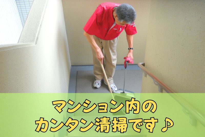 【仕事内容】 \名古屋市西区「鳥見パークマンション」での清掃のお仕事/ マンション共用部の日常清掃をお願いします。 【主な仕事内容】 ・エントランス、廊下、階段の掃き拭き ・外回りの掃き清掃 ・ゴミ置き場の水洗い 一人で担当するので、自分のペースでモクモクと働けます。 ご家庭でのお掃除経験があればすぐに慣れていただける内容です。 ✅短時間で無理なく働ける ✅責任感を持ってコツコツ作業できる方にぴったり ✅40~60代のスタッフ活躍中 【求人ID-A0010-1】