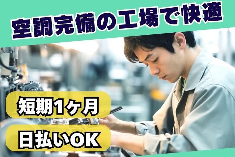 ✅大量募集!友達同士の応募OK!✅1ヶ月からの短期のお仕事!✅未経験OK!安心の軽作業✅日勤・土日休み!働きやすさ満点