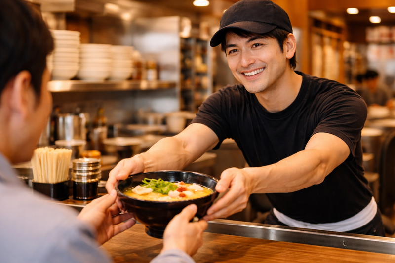 仕事内容: まずはラーメン店スタッフ(ホール・キッチン業務)として店舗運営からスタートし、経験を積みながら店長などへのステップアップを目指せます。飲食店(ラーメン・居酒屋・カフェ等)の経験も活かせます。 ------\\このお仕事の3つのポイント//------ ① 未経験でも月収30万円以上可 └ 入社1年目から30万円以上の実績あり ② 残業代は1分単位で全額支給 └ サービス残業なし(実際に全店舗で徹底) ③ 年間休日113日+5連休取得可 └ 飲食業界でも無理なく続けやすい環境 ------------------------------------------------- 【店舗運営】 ・ラーメンの調理・提供 ・接客対応 ・在庫・売上管理 ・衛生管理、発注業務 【店舗管理】 ・スタッフの採用・育成/シフト管理 ・人件費・コスト管理 ・食材ロス削減 ・売上向上のための施策実行 【研修制度】 充実した研修制度あり(OJT研修・マニュアル完備)で、未経験でも安心してスタートできます。 【キャリアアップ】 本人の希望に応じて、マネージャー・課長など上位ポジションも目指せます。 ※転勤の可能性あり(地域限定社員の選択も可) -------------------------------------------------