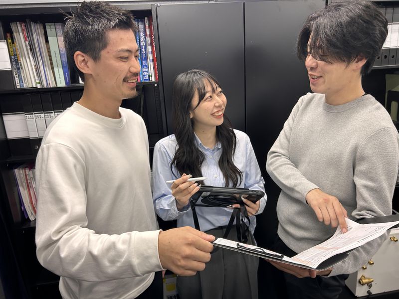 職場環境 平均年齢33歳!入社後はまずは先輩と現場を回り、仕事の進め方を覚えていきます。経験豊富で面倒見の良い先輩ばかりなので、確かな技術力が身に付くこと間違いなし。管理の業務をサポートする事務員も3名在籍しているため、チームで現場を進めていくことができます。 喫煙所:喫煙所あり(屋内)