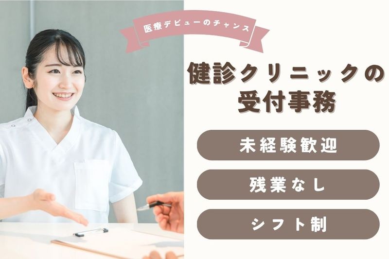 仕事の内容 ✨優良総合健診施設での受付・事務スタッフ募集✨ \未経験から医療業界へ!安定した環境でキャリアを築けます✨/ 厚生労働省が認定した「優良健診施設」でのお仕事です。 完全予約制のため、1日の対応件数があらかじめ決まっています。 突発的な業務が少なく、落ち着いて取り組める環境が整っています。 未経験からスタートした先輩も多数活躍中! 医療の知識がなくても、手厚いサポート体制で安心して成長できます。 【主な業務内容】 ・健診受診者さまの受付 ・施設内のご案内 ・電話での健診予約の受付、スケジュール管理 ・電子カルテの確認や基本情報の入力 ・健診結果に関する書類作成、発送 ・備品の管理、物品の準備 ・各診療科との連携や付随する事務業務< 【おすすめポイント】 ✅ 駅直結で通勤ラクラク!天候に左右されません ✅ 未経験歓迎!基礎からしっかり学べる教育体制 ✅ 医療事務や受付の経験を活かして働ける職場 「医療業界に挑戦してみたい」「長く安定して働ける環境を探している」という方にぴったりのお仕事です。 あなたの一歩を、ここからはじめませんか? まずはお気軽にご応募ください◎ お問い合わせの際には下記お仕事Noをお伝えください。 お仕事No:1428092