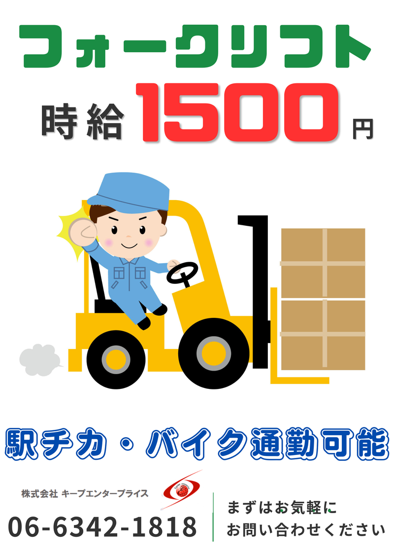 仕事内容 【駅チカ食品工場】 \フォークリフトスタッフ募集/ \サラダ・お惣菜工場での原材料搬入&仕分け作業/ \時給1,500円/フォークリフト免許を活かして安定勤務◎ ■仕事内容 スーパーに並ぶサラダやお惣菜類を製造している食品工場で、 フォークリフトを使った搬入・仕分け作業をお任せします。 《屋外作業(外)》 トラックで納品される野菜や食品原材料を荷下ろし リーチリフトを使用して受け入れエリアまで運搬 《屋内作業(中)》 入荷した原材料を品目ごとに仕分け・格納 空パレットの整理や簡単な倉庫内軽作業 必要に応じて室内での移動・配置換え作業 ★屋外と屋内、どちらの作業もありますが、長時間ずっと外にいることはありません。 ★季節に応じた作業負荷の調整あり。防寒・熱中症対策も整備されています。 《おすすめポイント・メリット》 ・食品大手ならではの安定感 ・大手スーパー向けのお惣菜を製造する工場だから、業績安定&仕事量も安定! ・長期的に腰を据えて働ける環境です。 ・清潔で快適な職場環境 ・食品工場なので衛生面は抜群◎