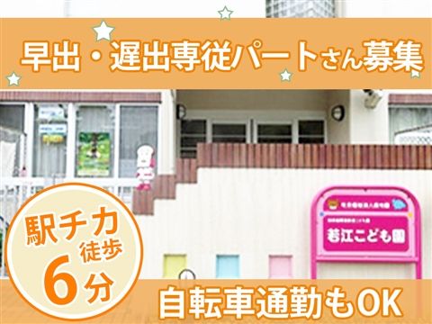 若江こども園 求人概要 若江こども園:保育士/早出・遅出専従パート 自転車通勤OK◎早出・遅出専従パート求人★駅徒歩6分!時給1300円~1600円【東大阪市・若江岩田駅・認定こども園・保育教諭・日勤パート】 職種 保育士 所在地 〒578-0941 大阪府東大阪市岩田町3丁目3-29 給与 時給1300円~1600円 求人詳細 自転車通勤OK◎早出・遅出専従パート求人★駅徒歩6分!時給1300円~1600円【東大阪市・若江岩田駅・認定こども園・保育教諭・日勤パート】 時給1300円~1600円!早出・遅出専従のパート募集です★自転車通勤OK&駅徒歩6分でアクセス便利な職場です♪お持ちの資格が活かせます◎先輩保育士が複数担任制でしっかりサポートします! 職種 保育士 仕事内容・PR ☆~☆ 日勤パート・保育教諭を募集中! ☆~☆ 当園で保育業務全般を担当していただきます。 経験豊富な先輩保育士が複数担任制でしっかりサポートするため、安心して業務に取り組むことができます。 雇い入れ後の業務内容の変更の範囲および就業場所の変更範囲の詳細は面談時にお伝えします。 雇用形態 早出・遅出専従パート 契約期間 雇用期間の定めあり 契約更新あり 勤務成績、態度、能力、および経営状況も踏まえて判断する