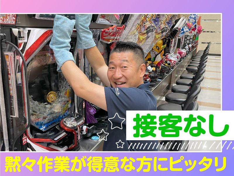 仕事内容 ★───\早朝2時間だけ☆/────★ 週3日~4日の勤務♪未経験大歓迎 (*^^)開店前なので接客ナシ!! ★─────────────────★ ≪具体的な業務内容≫ ✅パチンコ台拭き ✅パチンコ玉拾い ✅床清掃 ✅トイレ清掃 ✅ゴミ回収 など チームで分担して作業を進めるので 負担が少なく、残業ナシで 無理なく働ける環境です。 …………………………………… ✨家事の延長で働けます!✨ …………………………………… 清掃に使う道具で特殊なものはなく、 作業自体もとても簡単なので 普段のお掃除が得意な方であれば 清掃業未経験の方も大歓迎◎ 接客なしで黙々と働けますよ! …………………………………… ✨20代~60代まで活躍中✨ …………………………………… 子育てが落ち着いて復職した主婦さんや 定年後のお小遣い稼ぎで働くシニアまで 幅広い年代の方が活躍中♪ 別のお仕事との掛け持ちもOK! ご家庭の都合や本業、私生活に合わせて 無理なく続けられるお仕事です◎ …………………………………… ✨週3~4日で募集✨ …………………………………… シフトはご希望を最大限考慮! 基本的に残業はありません♪ 曜日はお気軽にご相談ください('ω')