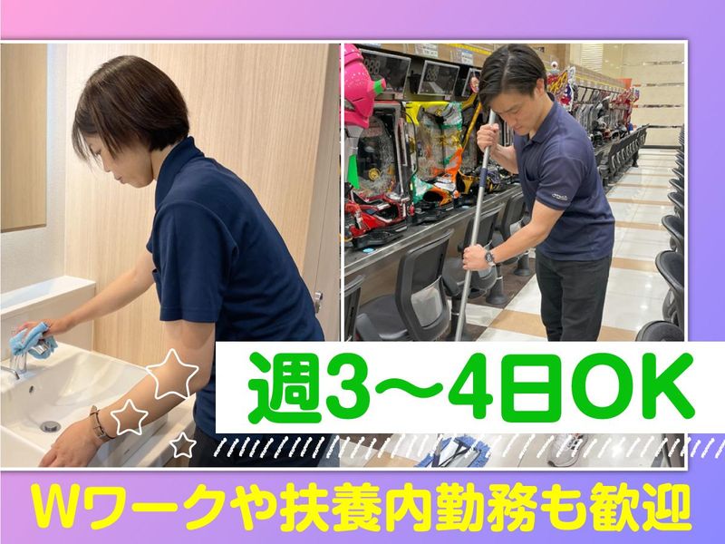 求めている人材 【未経験OK】 【ブランクOK】 【経験者歓迎】 お久しぶりのお仕事復帰も大歓迎♪ *お掃除が得意な方、綺麗好きな方歓迎 *20代~60代まで幅広い年代が活躍中 *清掃業務経験者の方も大歓迎! \こんな方が活躍中!!/  ̄ ̄ ̄V ̄ ̄ ̄ ̄ ̄ ̄ ̄ ̄ ◎本業と掛け持ちのWワーカーさん ◎扶養内でお小遣い稼ぎをしている主婦さん ◎適度に身体を動かしたいシニアの方 ◎週5日のレギュラー勤務の方 など / 業界大手「マルハン」の100%出資グループ会社です! \ なんと、、、全店舗で総勢1500名以上活躍中! \\稼げるだけでなく定着率が良い// //理由をご紹介します!(>ω<)\\ ●家庭など、普段の生活で 使用する道具ばかりなので、 未経験からでも始めやすい ●力仕事がない ●ほどよく体を動かして働けるから 健康のためや運動不足の解消にもなる ●先輩スタッフがしっかりサポートしてくれる ●年齢・性別問わず、スタッフ同士の仲が良い ●自分のペースでコツコツ黙々働ける など ≪在籍中のスタッフから嬉しい声多数♪≫ \\福利厚生バッチリ☆// //嬉しい手当多数あり\\ ●当社が清掃管理している各現場では 20代、30代のフリーターや 40代・50代の主婦や中高年 60代のシニアまで活躍中! ●6割以上の方が勤続年数1年以上! 3割以上の方が勤続年数3年以上! 年齢の条件と理由:あり(20歳以上 健康増進法により20歳未満立ち入り禁止のため)
