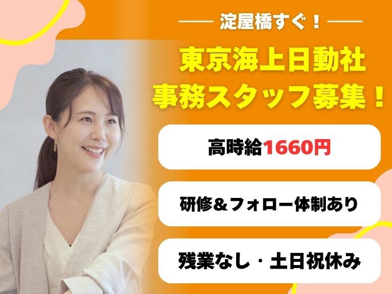 概要 損保事務 問合せ対応 書類作成等 募集職種 一般事務・営業事務・アシスタント 雇用形態 派遣社員 勤務先店舗・オフィス 株式会社東京海上日動キャリアサ―ビス 募集内容 この求人のポイント 損保事務 損保会社/1660円/交通費全額支給/淀屋橋すぐ/fM5016e【損保事務 問合せ対応・書類作成等】フルタイムのお仕事 残業なし 東京海上日動 東京海上日動社・営業部門での損保事務のお仕事です <お仕事内容> ・計上(全種目) ・代理店や顧客からの問い合わせ対応 (電話やメール等) ・書類の作成やチェック ・データ入力、管理等 *損保事務経験(計上)を活かせるお仕事です! ※最長2027年3月末までのお仕事です※ ……………………………………………… <★オススメポイント★> ◎教育&フォロー体制あり 事前研修3日間あり! ブランクのある方も 安心してスタートできます♪ ◎プライベートと両立しやすい! ・残業なし ・土日祝休み ・時間帯は 9:15~17:00または 9:00~16:45のどちらかでご相談可 ◎駅近 ・各線淀屋橋駅徒歩1~4分 ◎弊社スタッフさん活躍中です! ……………………………………………… 少しでも 「気になる!」 「詳しく聞いてみたい!」 と思われた方、 ぜひエントリーお待ちしております! フロア人数:150名 【ご登録内容を確認後、ご紹介可能な場合のみご連絡いたします。ご応募いただいたお仕事以外にも、複数のご紹介が可能な場合がございます。応募フォームの「備考」欄よりご希望の職種(業務内容等)をお知らせください。】 勤務地: 大阪府大阪市中央区 アクセス: 大阪メトロ御堂筋線淀屋橋駅より徒歩 1分 京阪本線淀屋橋駅より徒歩 4分 業種・業界 人材紹介・派遣業 必須スキル・経験・資格 経験職種:計上(自動車)/計上(火災)/照会応答(自動車)/照会応答(火災) Word:既存修正/新規作成 Excel:修正入力/新規作成 PP:修正入力/資料作成 勤務期間:即日歓迎(開始日相談可)~長期(3ヶ月以上) 推奨スキル・経験・資格 損保事務のご経験のある方 受動喫煙防止措置条項 屋内禁煙