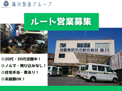 仕事内容 \\✨長く安心して働ける理由✨// ⭐お客様に求められる地域密着型の会社 ⭐ノルマ・飛び込み・テレアポ一切なし ⭐ペーパーレスで環境に優しいオフィス ⭐残業少なめ(月平均20時間) ⭐有休取得率100%!連休取得も◎ ⭐独身寮1.5万円/家族寮3万円完備 ⭐昇給あり/賞与年2回/手当豊富 ⭐低い離職率(直近5年:平均1.54%) ▼∴▼∴▼∴▼∴▼∴▼∴▼∴▼∴▼∴▼∴ 「車の知識を活かしたい!」 「誠実にお客様に向き合いたい!」 「数字を追うだけの毎日に疲れた…」 「現場作業、体力がきつくなってきた…」 「家族との時間をしっかり確保したい」 そんな想いで転職してきた 元ディーラー営業、元整備士、 元教習所教官などが多数活躍中。 当社はガツガツ「売る」営業ではなく、 困っている現場を「支える」営業です。 ”あなたの街の部品屋さん”として、 地域に頼られる存在を目指しませんか? ▼∴▼∴▼∴▼∴▼∴▼∴▼∴▼∴▼∴▼∴ ───────【仕事内容】─────── 埼玉県内の整備工場やカーディーラーなど 既にお取引のあるお客様に対し、ルート営業をお願いします。 <具体的には…> ⏩ご注文品(部品)の納品 ⏩新たなご要望のヒアリング、ご提案 ⏩発注や納品の手配など ⭐新規のテレアポや飛び込みは 一切ありません! ⭐まずは近隣エリアを中心に5〜10件の お客様を担当していただきます! ⭐ 知識が活きる瞬間! 「この車種のあの部品ある?」 整備士さんからのそんな相談に対し、 パッと答えられると非常に感謝されます ^^ ──────【取り扱い商品】────── ⏩純正部品、優良部品、リサイクル部品 ⏩アクセサリー類(カーナビや ホイールなど) ───────【会社紹介】─────── 埼玉県内に13拠点を展開する 自動車部品の総合商社 「森川部品グループ」は、 地域に密着した営業戦略で この不安定な社会情勢下でも増収増益! 100名以上の社員を抱え、 創業から50年以上経った今でも 安定した成長を続けています! 今後も “あなたの街の部品やさん”として お客様の、パートナーの、業界の “そばに、なくてはならない存在”で あり続けたいと考えています! <営業所は埼玉県内に13箇所> 北本、上尾、本庄、熊谷、川口、 浦和、加須、久喜、岩槻、神明、 越谷、東松山 ※面接は本社(鉄道博物館駅 徒歩7分) にて実施します。
