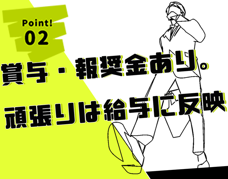 職場環境 ・3ヶ月毎の目標達成で報奨金を支給 ・完全週休2日制(土日祝)/年休127日 ・残業は月平均10~30時間ほど(20時には完全退社) ・住宅移転支援最大30万円支給 ・資格取得支援制度あり(費用全額会社負担) ・交通費支給(規定)/退職金制度あり 喫煙所:なし(敷地内全て禁煙)